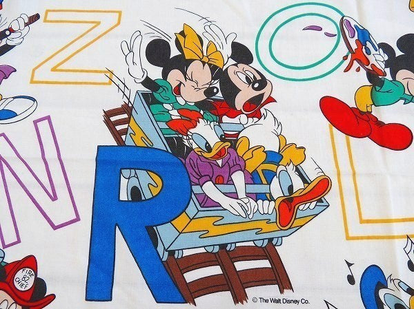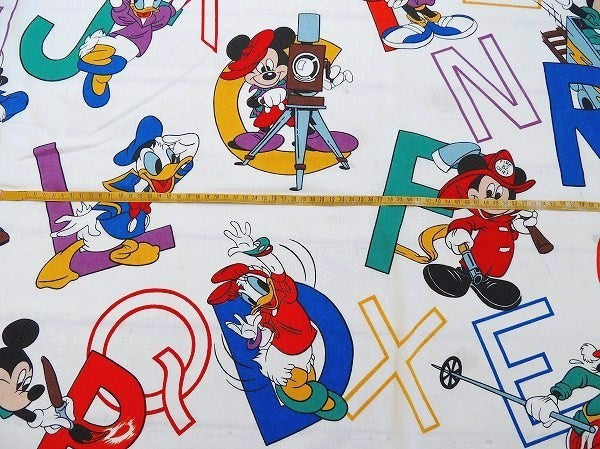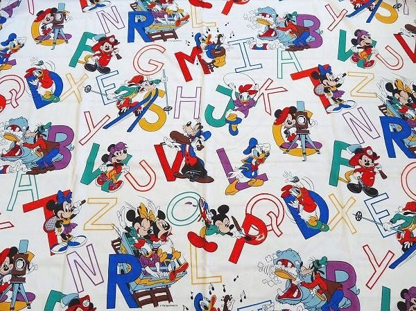 【ミッキー&フレンズ】アルファベット柄・ヴィンテージ・フラットシーツ(1/2) USA