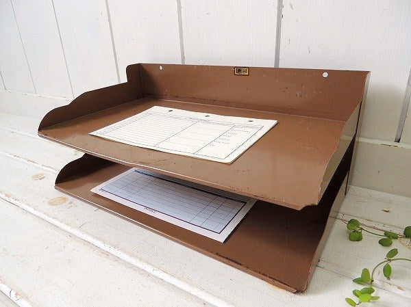 【FLASH FILING】メタル製・2段式・ヴィンテージ・書類ラック/デスクトレイ USA