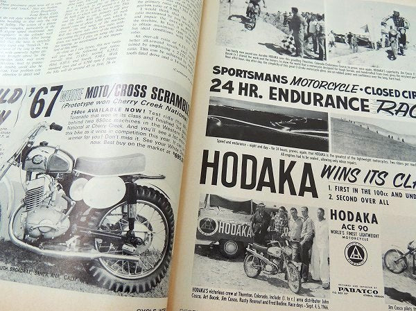 ※MOTO GUZZI125/グッドイヤー/BSA/スズキ/GREEVES for 1967/NGK/PIRELLI/MAGNUM ELECTRA-500/JAWA/Yamaha/ヤマハ/KAWASAKI SAMURAI 250 カワサキ サムライ/SPRITE TRIALS//Norton/HONDAホンダCL-160/DUCATI HISTORY/All bike drag meet/TRIUMPH/トライアンフ/ハーレーダビッドソン/Harley‐Davidson/エンジン/フレーム/......記載あり 古き良きアメリカの当時のファッションやカスタムアイデアなど色々な記事・広告が楽しめます♪