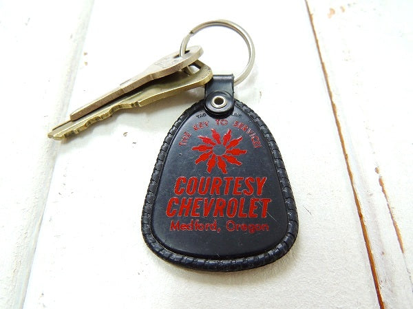 黒色のキーホルダーに【COURTESY/CHEVROLET/Medford,Oregon】と文字が入っております。