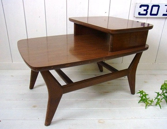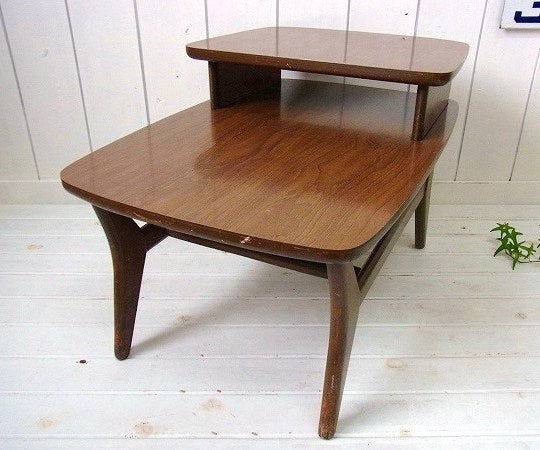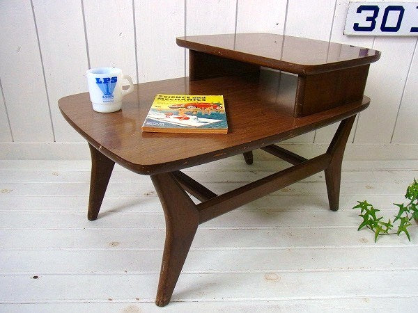 2段・木製・ヴィンテージ・サイドテーブル/カフェテーブル/机 USA
