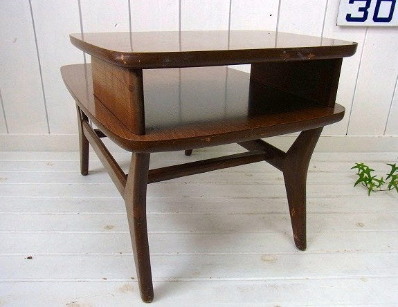 アメリカで見つけました・・2段の木製ヴィンテージ・サイドテーブルです。