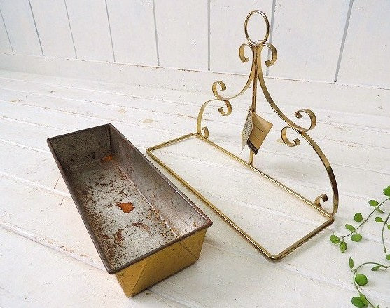 曲線のデザインが素敵なフレームはゴールド色のメタル製で、トレイはティン製になります。