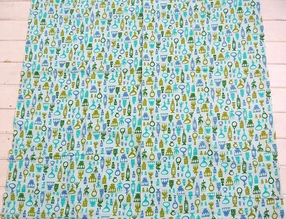 ミッドセンチュリー・デカンタ柄・デッドストック未使用・ヴィンテージ・ファブリック・生地・テキスタイル