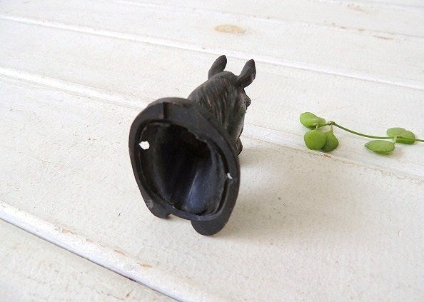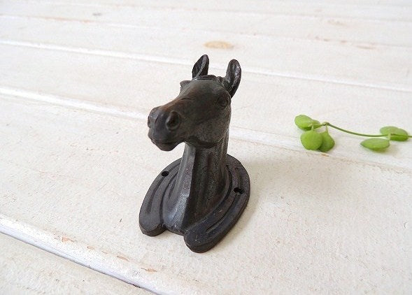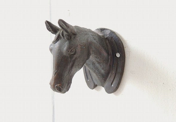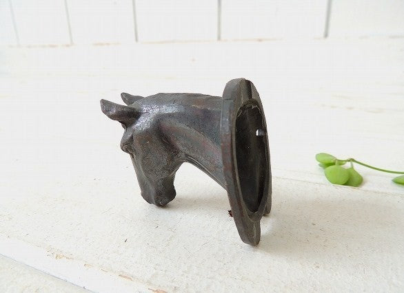 アメリカで見つけました・・馬の顔と蹄鉄モチーフの鋳物製・小さなアンティーク・フックです。
