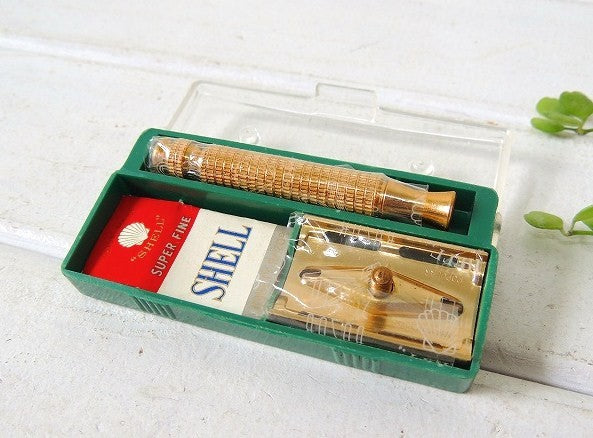 アメリカで見つけました・・『SHELL/シェル』のケース付き・アンティーク&ヴィンテージ・髭剃り (カミソリ・シェービング)金属製・デッドストックです。