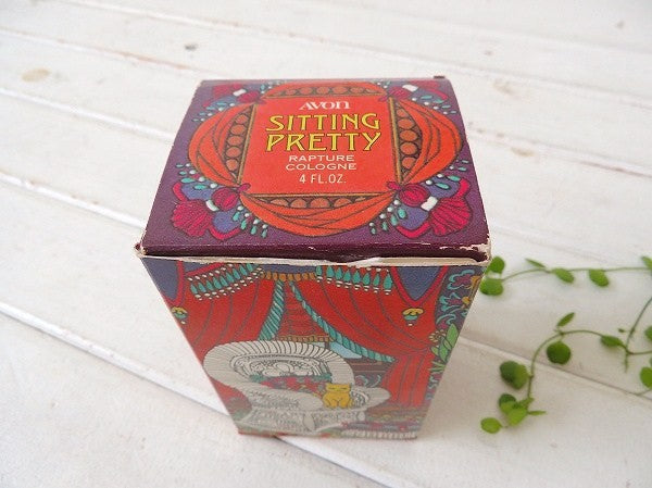 アメリカで見つけました・・揺れる椅子(チェア)の上に座っている可愛いネコちゃんの『AVON(エイボン)社』のデッドストック箱入り・アンティーク・コロンボトル【SITTING PRETTY / RAPTURE COLOGNE】です。