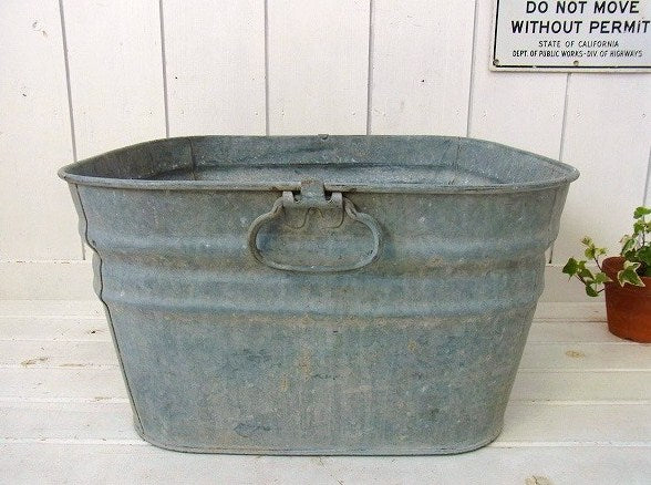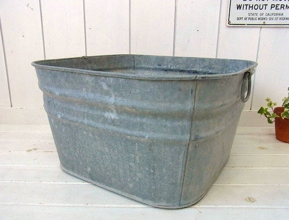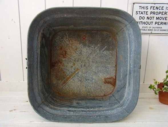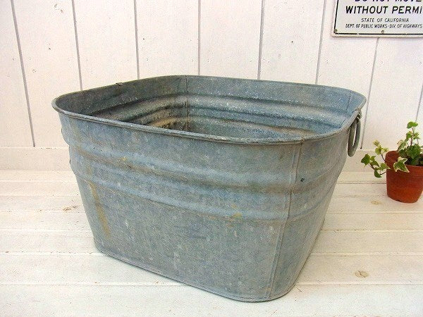 スクエア型のシャビーなヴィンテージ・ブリキバケツ/洗濯タライ・USA