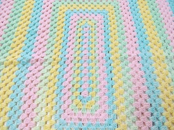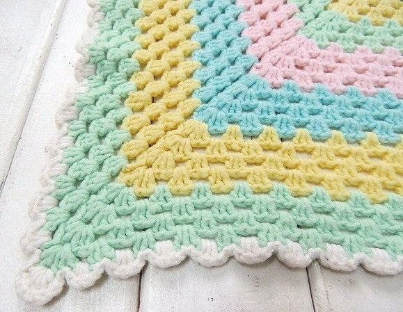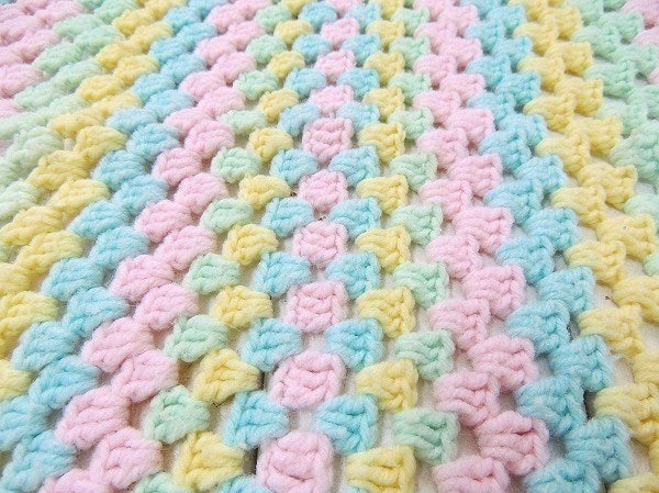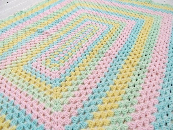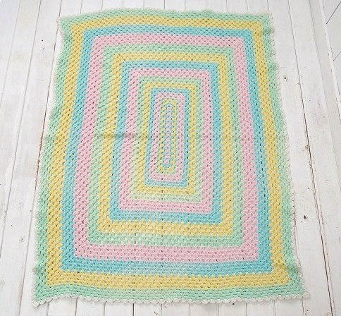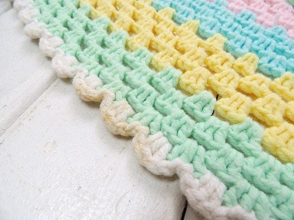 【USA・パステルカラー】ハンドメイド・ヴィンテージ・ニットブランケット/ひざ掛け
