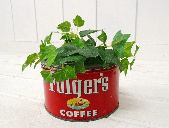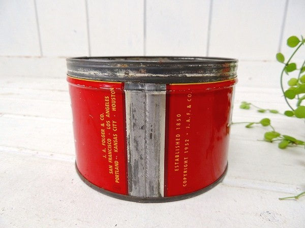 【Folgers】フォルジャーズ・赤色・ブリキ製・ヴィンテージ・コーヒー缶/ティン缶 USA