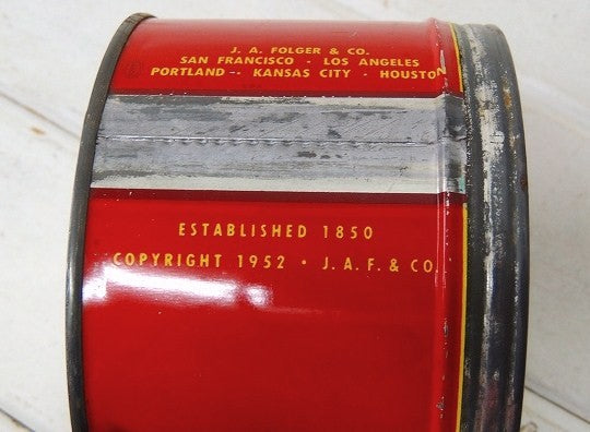 Californiaで見つけました・・アメリカの老舗コーヒーブランド『Folgers(フォルジャーズ)』のヴィンテージ・ティン缶です。