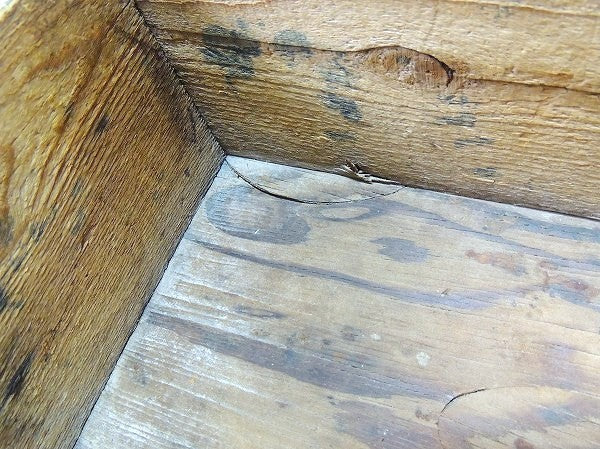 経年により全体にイタミがあり、ヨゴレ・スリキズ・釘が出ている箇所・木の剥がれ等ございます(画像参照)。