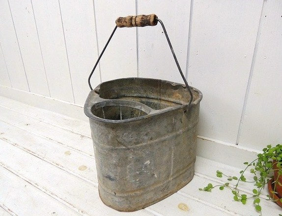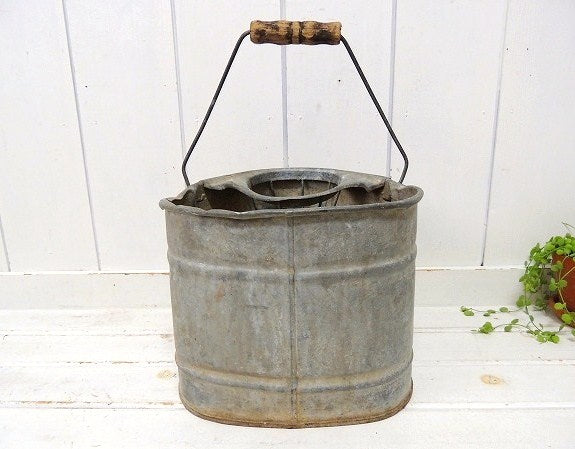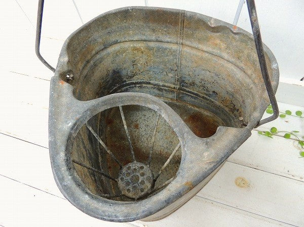 USA モップ絞り付き・三角形・ヴィンテージ・ブリキバケツ バケツ エクステリア 生活雑貨 シャビー