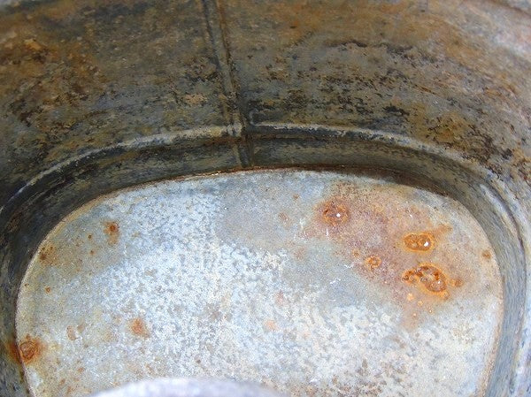 底にサビ穴が数箇所ございますので、お水を入れてバケツとしての使用はオススメできません。