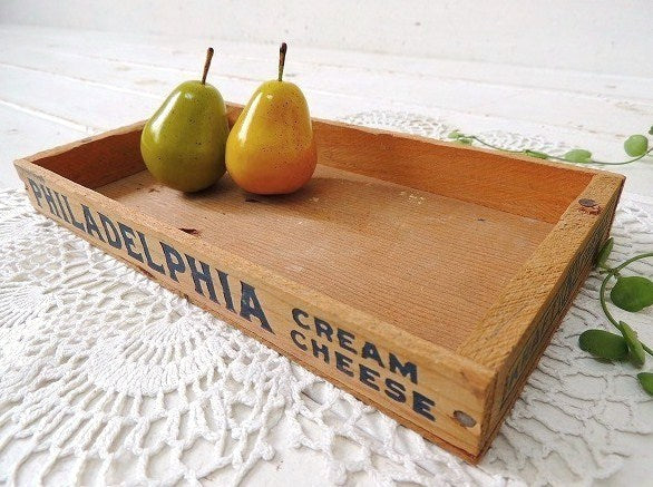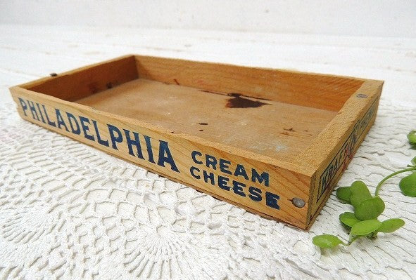 アメリカで見つけました・・『フィラデルフィア・クリームチーズ』の木製・ヴィンテージ・チーズボックスです。