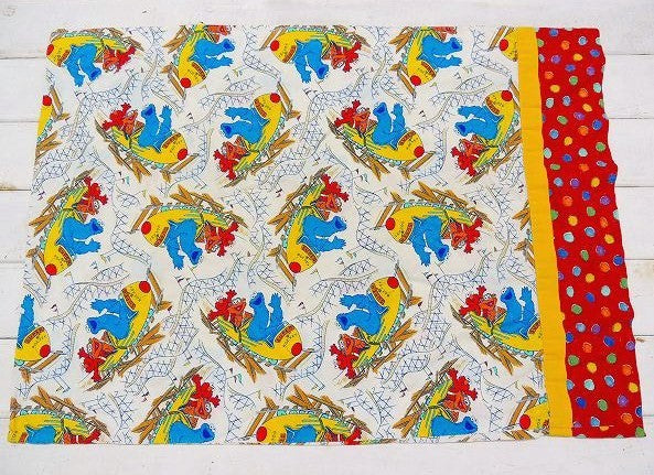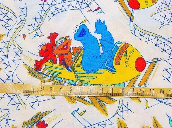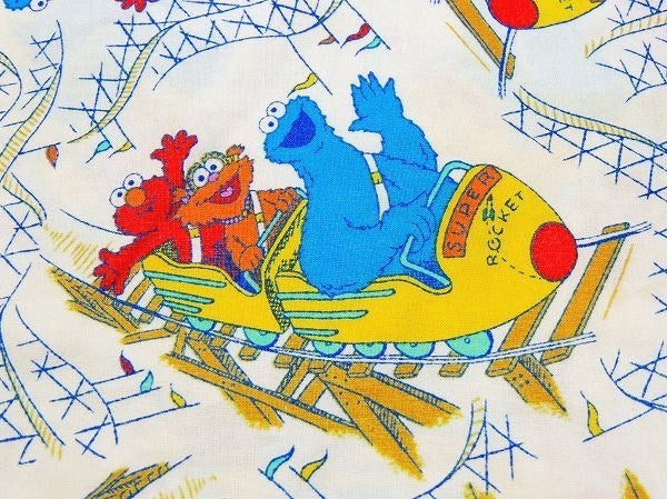 アメリカで見つけました・・『セサミストリート』の乗り物柄・ヴィンテージ・USEDピロケース(枕カバー)です。 クッキーモンスター&エルモ&ゾーイがジェットコースターに乗っている、キュートな総柄プリントです。 枕の挿入口はカラフルな水玉柄です。 ピロケースとしてはもちろん、お洋服や小物・バッグなどのリメイク・ハンドメイドなどに・・♪ 多少の使用感がはございますが、大きなダメージはございません。 日本国内にてお洗濯済みです。 画像(写真)でのご判断を宜しくお願い致します。 ■SIZE :約 W71cm×H51cm ■コンディション : ★★★★☆ ■レターパックライト¥360対応可(追跡サービスあり・補償なし) ※ご注文の際、お手数ですがメッセージ欄に『レターパックライト希望』とご記入下さい。新たにお見積もりをメールにてお知らせさせていただきます。