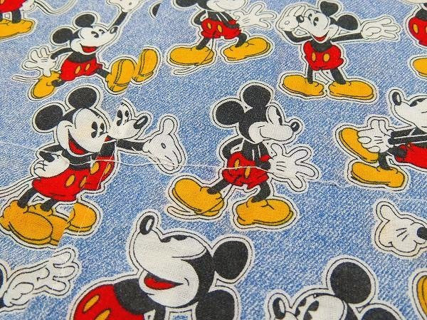【ミッキーマウス】USA・デニム柄・ヴィンテージ・ピロケース/枕カバー