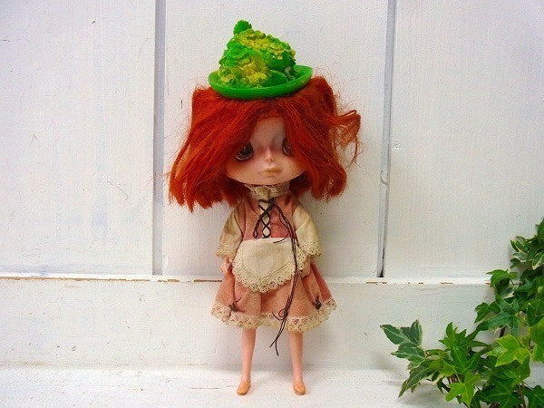 海外向けに輸出されていたソフトビニール製の人形で、大きな頭と目がインパクトのある女の子です。