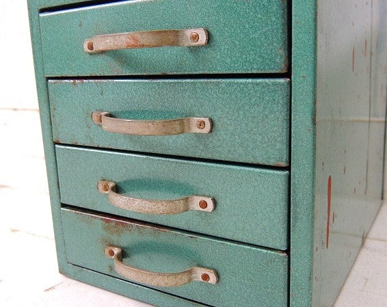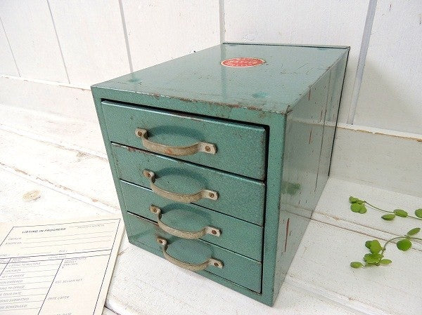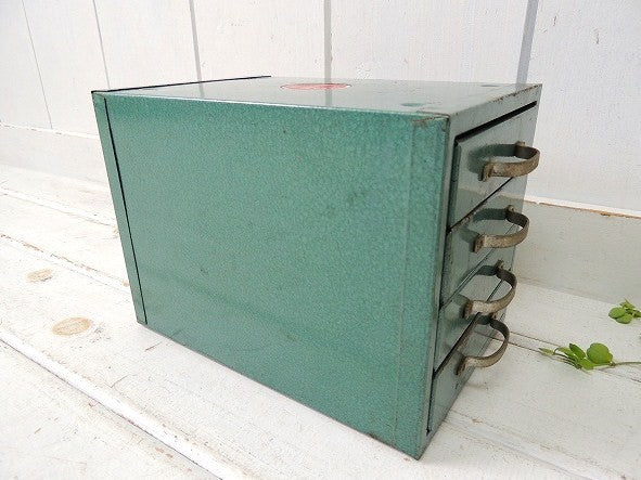 アメリカで見つけました・・『WARDS MASTER QUALITY』の4段式・小さなアンティーク・卓上チェスト(引き出し/キャビネット/工具箱)です。