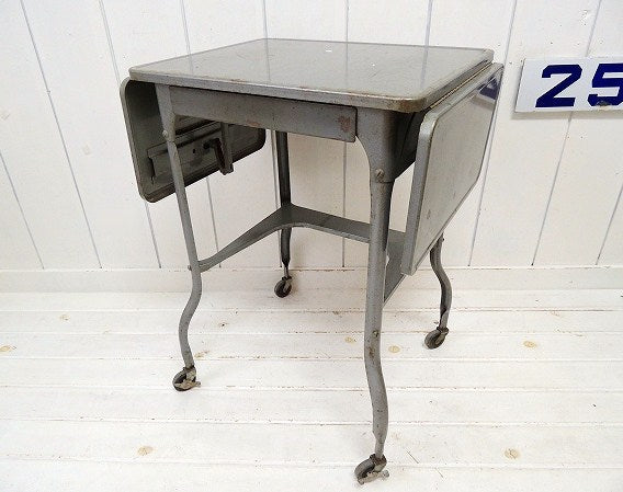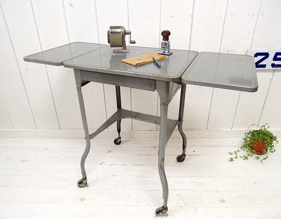USA・スチール製・引き出し付き・ヴィンテージ・タイプライターデスク/バタフライテーブル/作業台/机