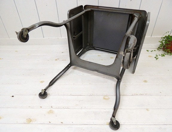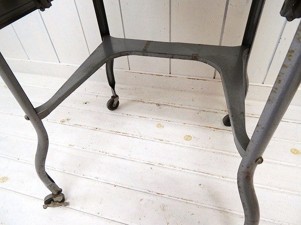 アメリカで見つけました・・引き出し&キャスター付きのスチール製・ヴィンテージ・タイプライターデスクです。