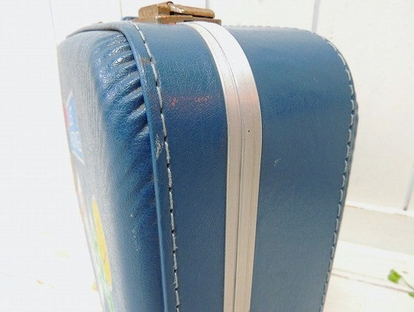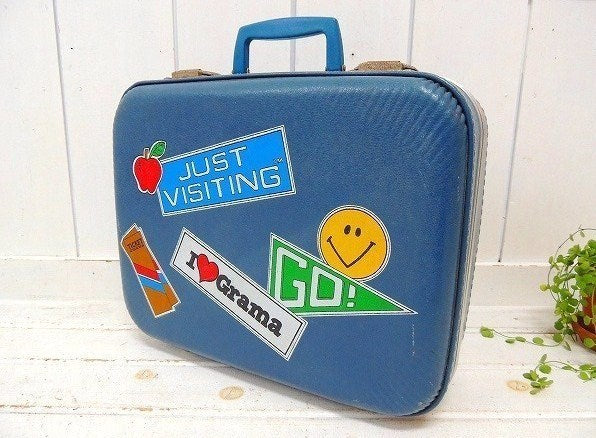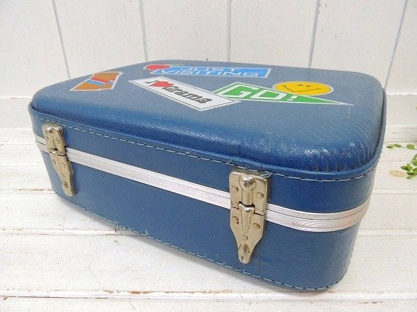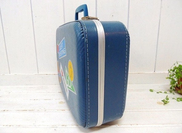 スマイルの絵柄入り・ブルー色・小さなヴィンテージ・スーツケース/トランク/旅行バッグ