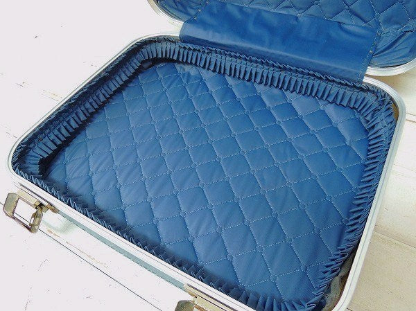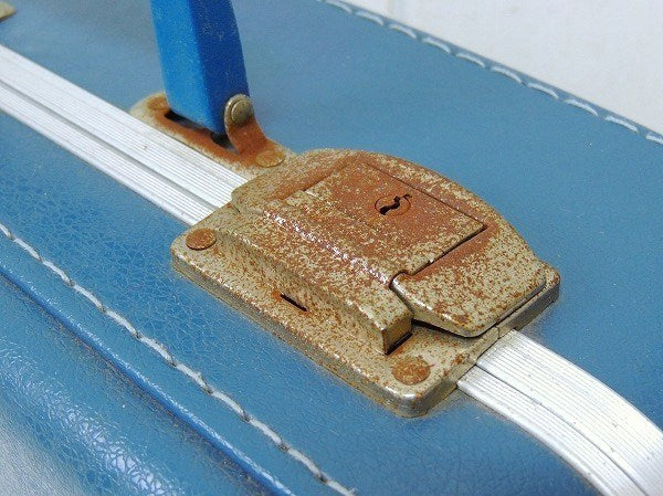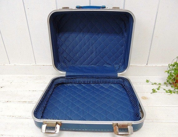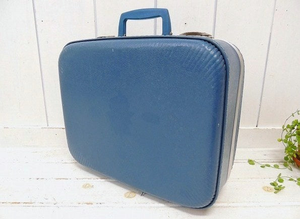 アメリカ見つけました・・青色の小さなヴィンテージ・スーツケース(トランク)です。