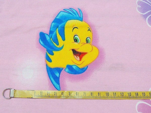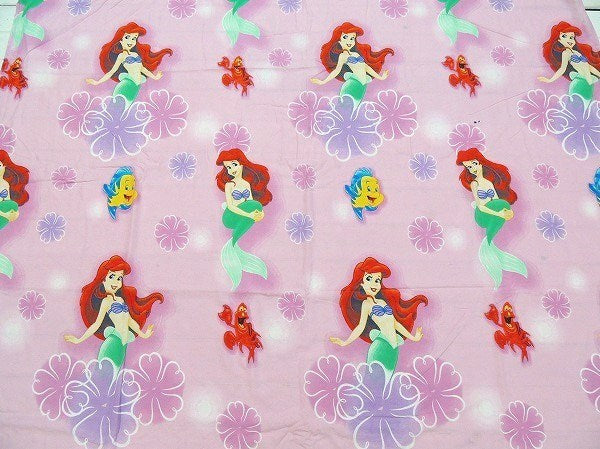 アメリカで見つけました・・ディズニー映画『リトルマーメイド』のUSED・フラットシーツです。 美しい人魚のアリエルやフランダー・セバスチチャンの、メルヘンなプリントです。 キャラクター生地として、子供服のリメイクや小物・バッグなどハンドメイドに・・♪ 多少の使用感・1箇所程にヨゴレが見られます(画像参照)。 日本国内にてお洗濯済みです。 画像(写真)でのご判断を宜しくお願い致します。 ■SIZE :約 W158cm×H230cm ■コンディション : ★★★☆☆ ■レターパックプラス¥510対応可(追跡サービスあり・補償なし) ※ご注文の際、お手数ですがメッセージ欄に『レターパックプラス』希望とご記入下さい。新たにお見積もりをメールにてお知らせさせていただきます。