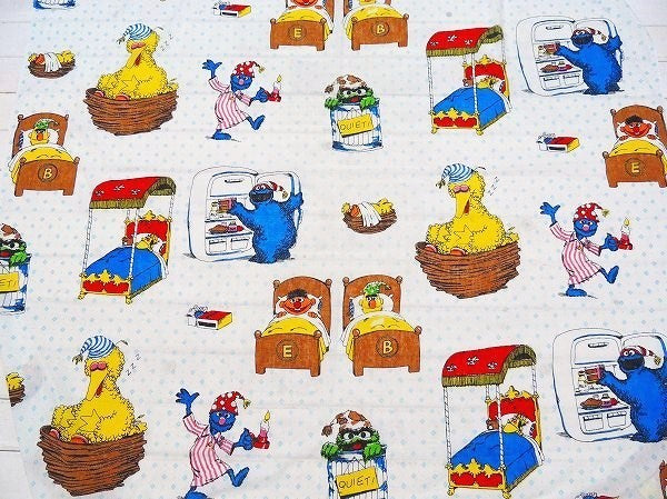 【セサミストリート】ベッド&パジャマ柄・ヴィンテージ・ユーズドシーツ(ボックスタイプ)