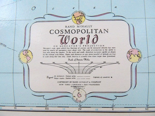 【Rand McNally COSMOPOLITAN World on MERCATOR'S PROJECTION COPYRIGHT BY RAND MCNALLY&COMPANY NEW YORK・CHICAGO・SAN FRANCISCO MADE I N U.S.A.】とございます。