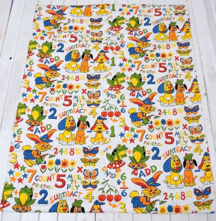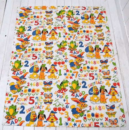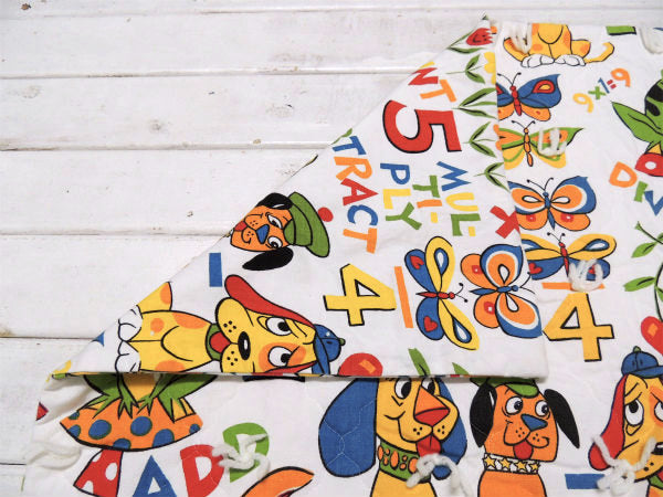 動物&お花&数字柄のレトロなヴィンテージ・ベビーマット(両面タイプ)
