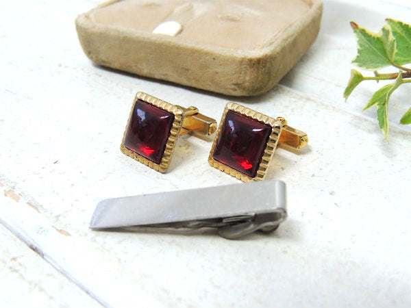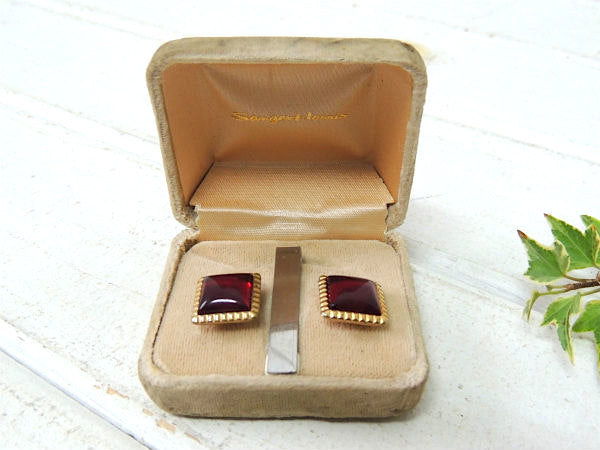 アメリカで見つけました・・ヴィンテージ SWANK:スワンク(タイピン)&NSON PEND(カフスボタン )お洒落なシンプルデザインのタイピン(シルバー色)&カフスボタン(ワインレッド&ゴールド色)ケース付きですです。