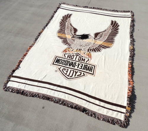 アメリカ西海岸で見つけました・・アメリカを代表するオートバイ・メーカー『ハーレーダビッドソン』の大判サイズ・ヴィンテージ・ブランケットです。