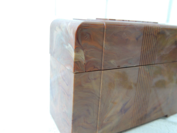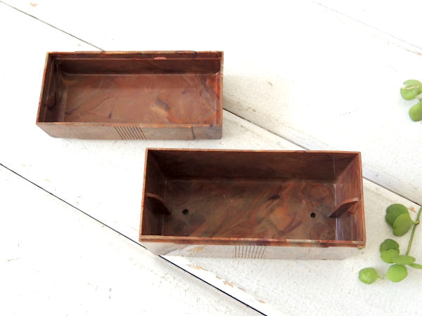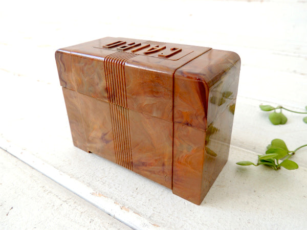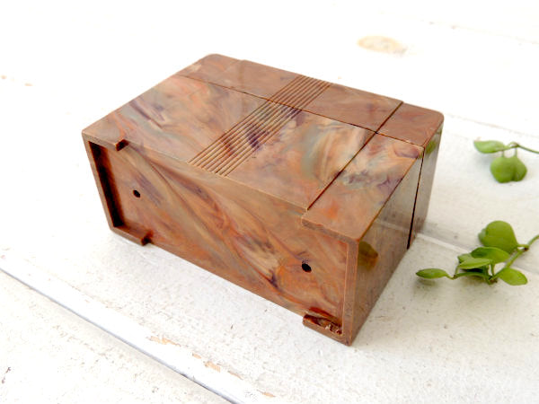 アメリカで見つけました、小さなヴィンテージ お洒落なデザイン&マーブルカラーのプラスチックケース (卓上シガレットボックス)です。