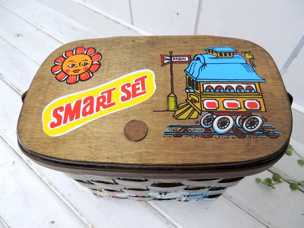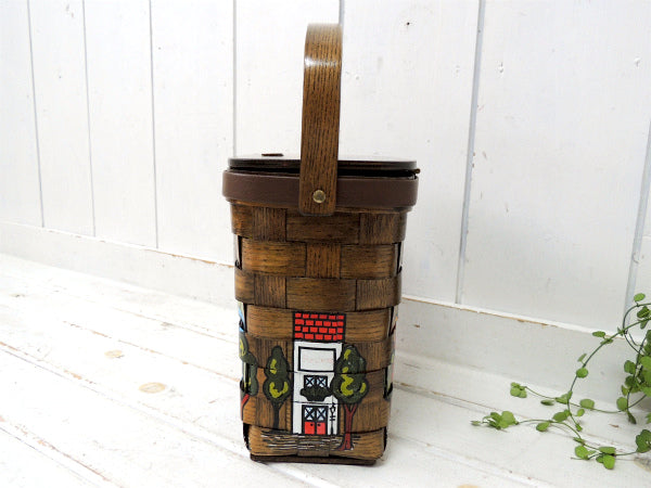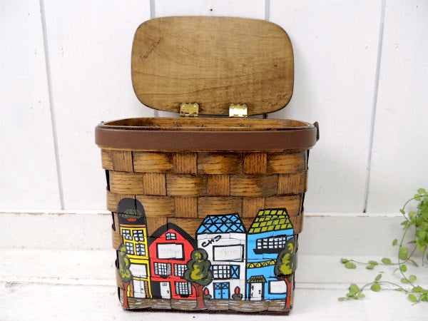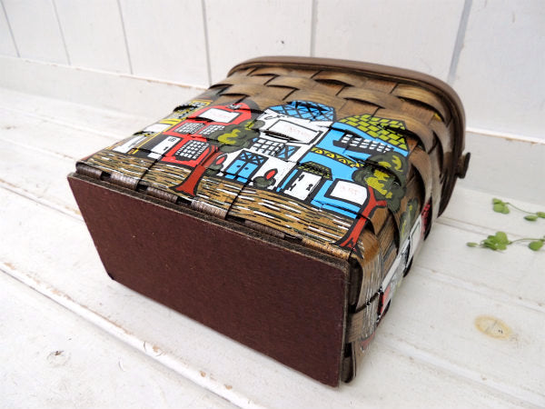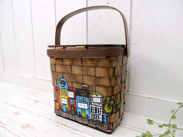アメリカでも人気の高いコレクターアイテムで、カラフルな可愛い町並みがハンドペイントで描かれた、木製バスケットです。