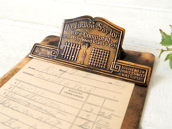 【1856y~ワイヤーカンパニー/アドバタイジング】銅製・アンティーク・バインダー/クリップボード