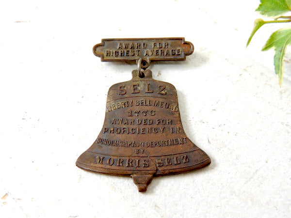 AWARD FOR HIGHEST AVERAGE/SELZ/LIBERTY BELL MEDAL 1776 AWARDED FOR PROFICIENCY IN SCHOLARCSHIP AND DEPORTMENT BY MORRIS SELZ/SELZ CHICAGO USA英数字があります。