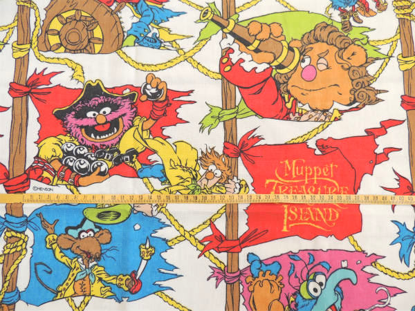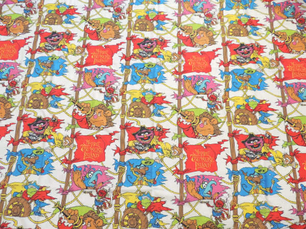 アメリカで見つけました・・ジムヘンソンによって作られた『マペット』の【マペット・トレジャーアイランド】ヴィンテージ・USEDフィットシーツです(ダブルサイズ)。