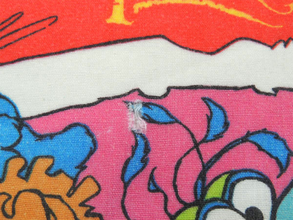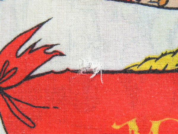 プリントの発色良く、生地もしっかりしておりますが、数箇所に小さなヤブレ等ございます(画像参照)。