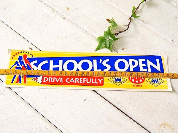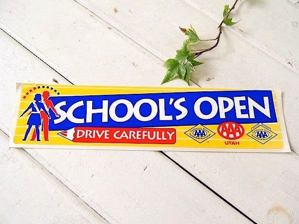 アメリカ西海岸で見つけました!“ SCHOOL'S OPEN/DRIVE CAREFULLY (AAA:トリプルエー)”のカリフォルニア・ステートのオリジナル ステッカー(デッドストック) California State/Automobile Association/NEVADA DIVISIONです。