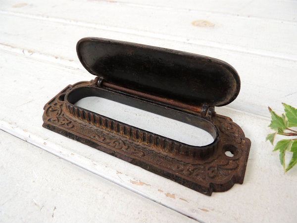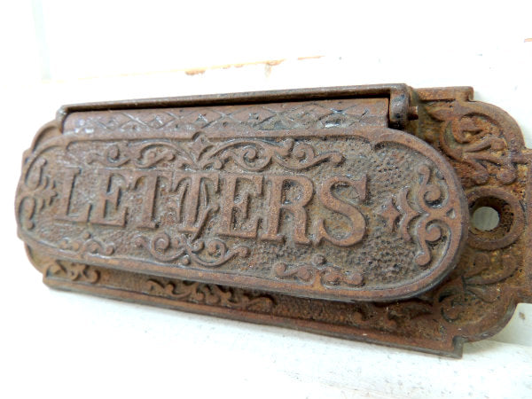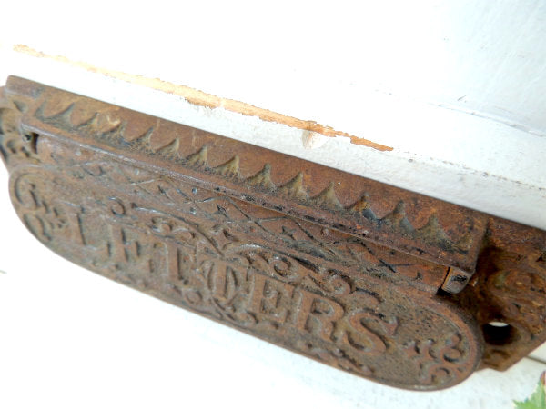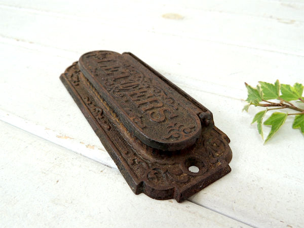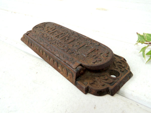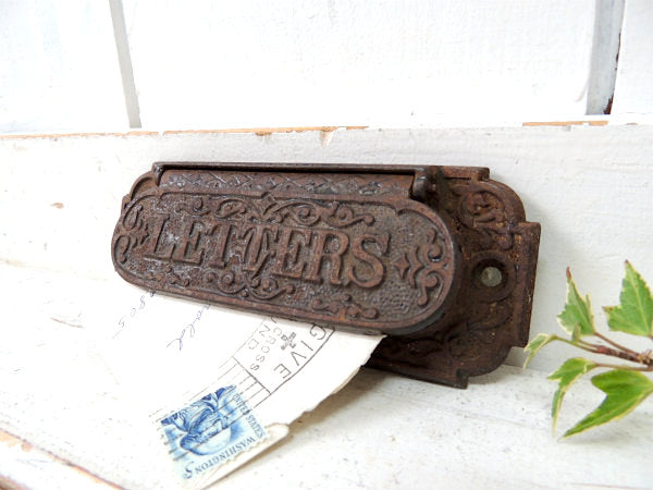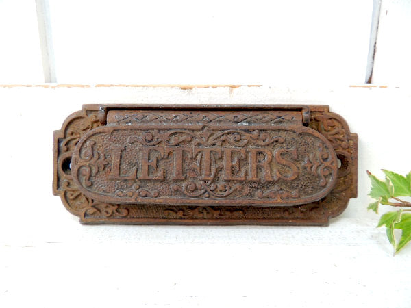 アメリカで見つけました・・お洒落な模様のアイアン製のアンティーク・レタースロット(郵便受け)です。