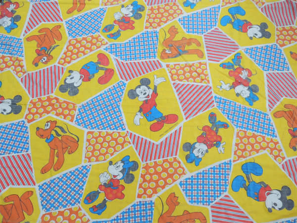 【ミッキーマウス】オールドミッキー・パッチワーク柄・ヴィンテージ・ユーズドシーツ(1/2)