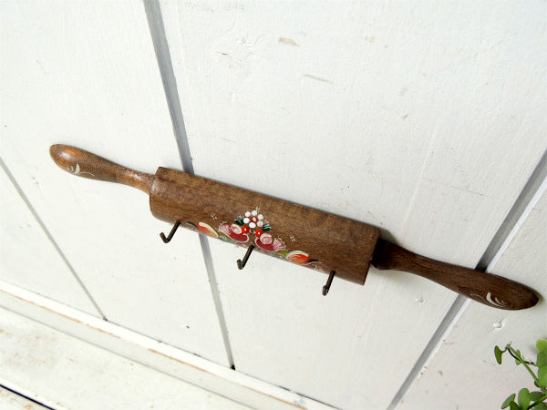 アメリカで見つけました・・ローリングピン(麺棒)形の木製のアンティーク・壁掛けフックです。