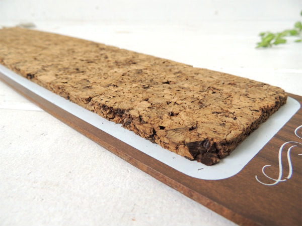 縦長のウッド柄プレートにコルクボードが付いております。