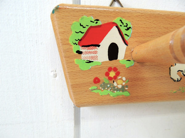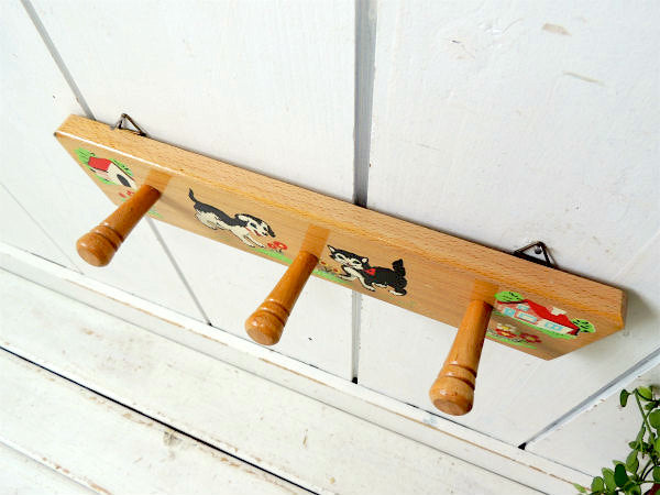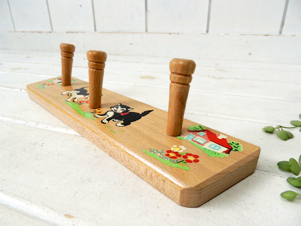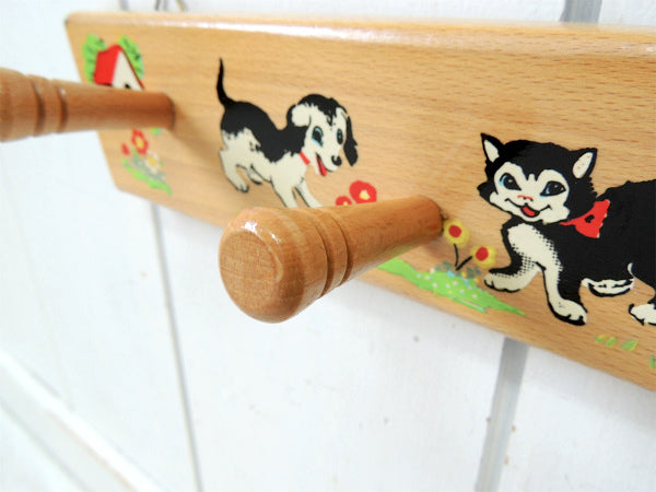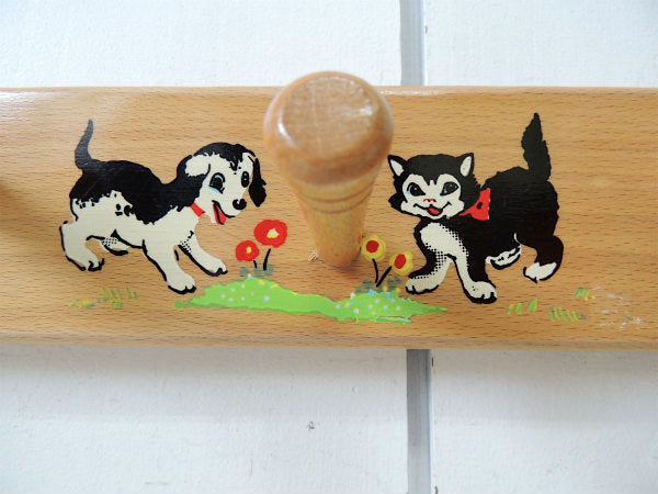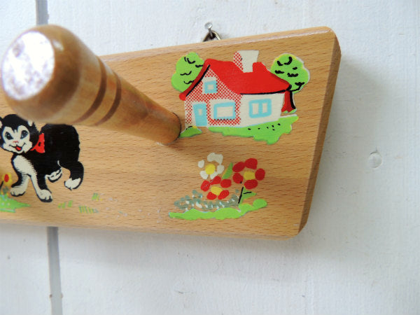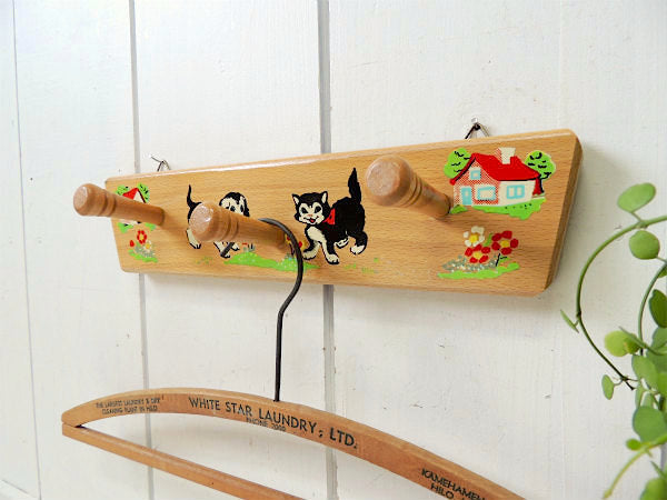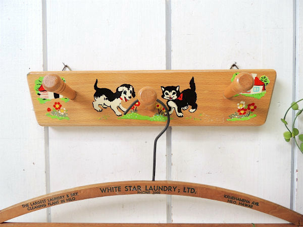 フランス・犬&ネコ柄・木製・ヴィンテージ・ウォールフック/壁掛けフック