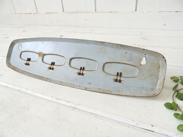 水色×白色チェッカー柄のブリキ製プレートに、シャビーなフックが4個付いております。