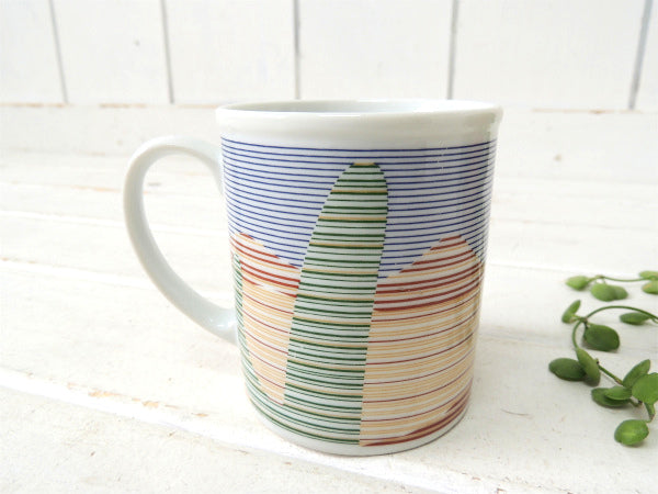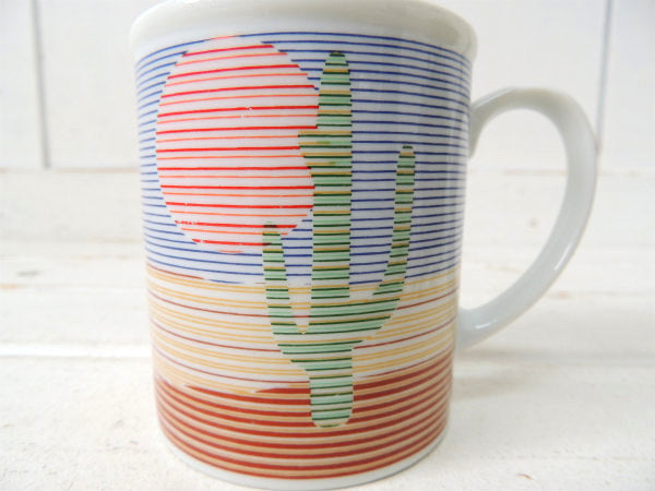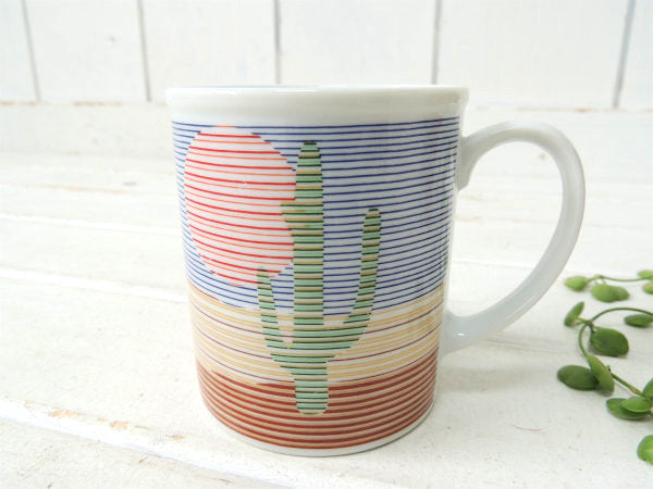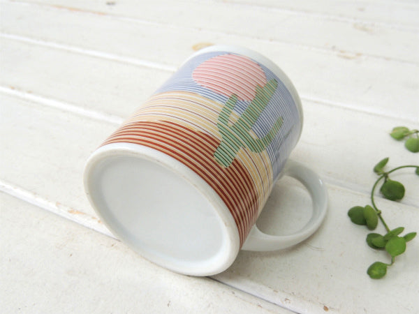 砂漠のサボテン&夕日柄・陶器製・ヴィンテージ・マグカップ/ネイティブ
