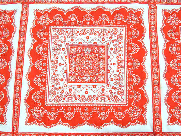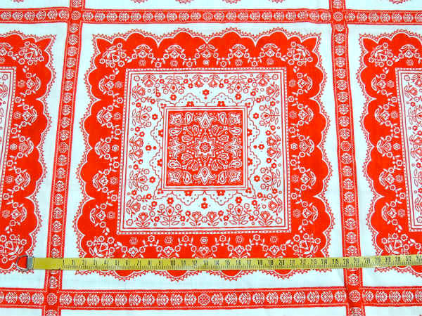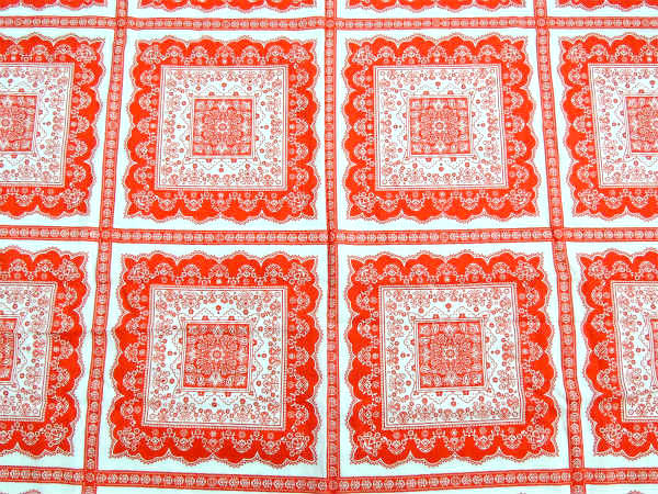 赤×白色の、ペイズリー&花柄のカラフルな総柄プリントです。