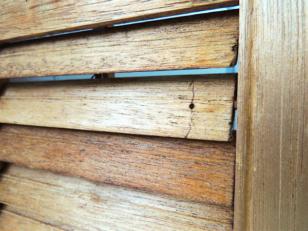 アメリカ西海岸・ロサンゼルスで見つけました・・白いペンキの付いた木製のアンティーク・ルーバーです。