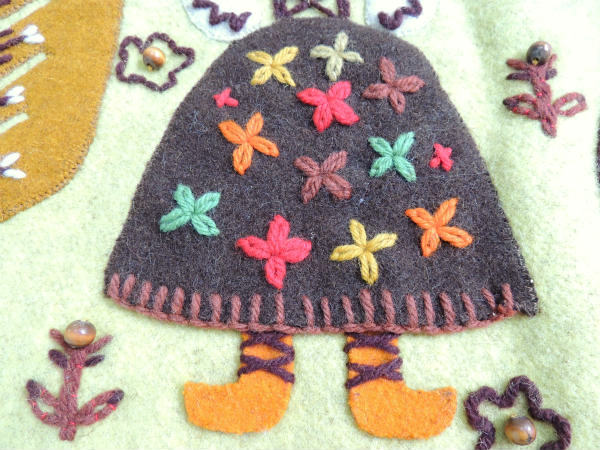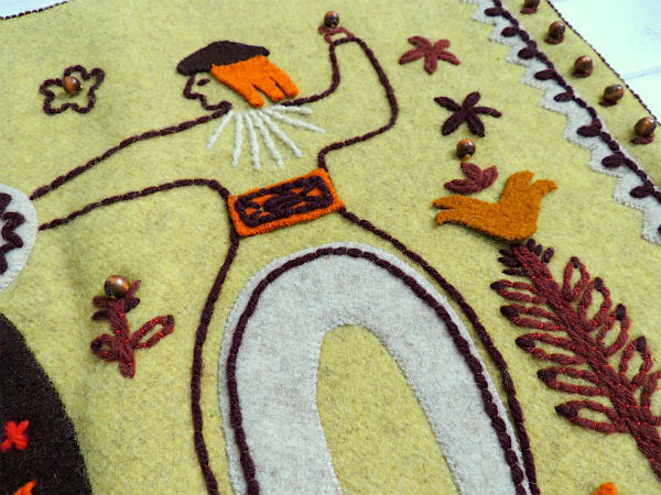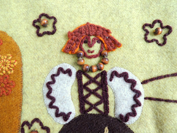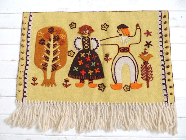 民族衣装 毛糸 刺繍・ステッチ・フェルト アンティーク・タペストリー 壁飾り USA ラグ
